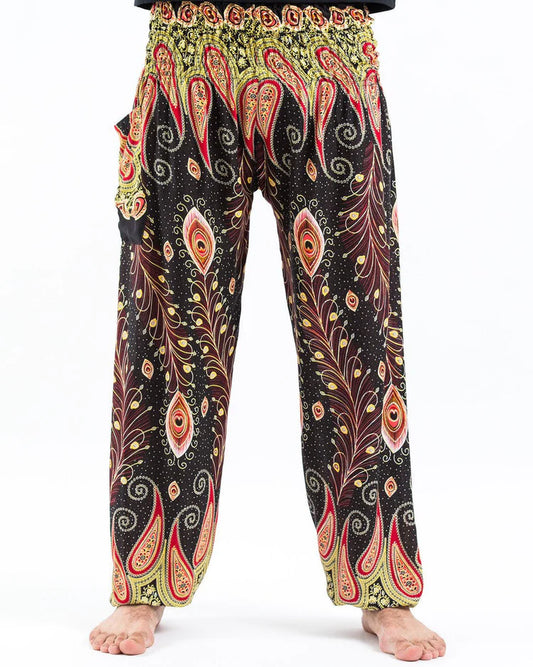 UNISEX PEACOCK PAISLEY HAREM PANTS IN BLACK