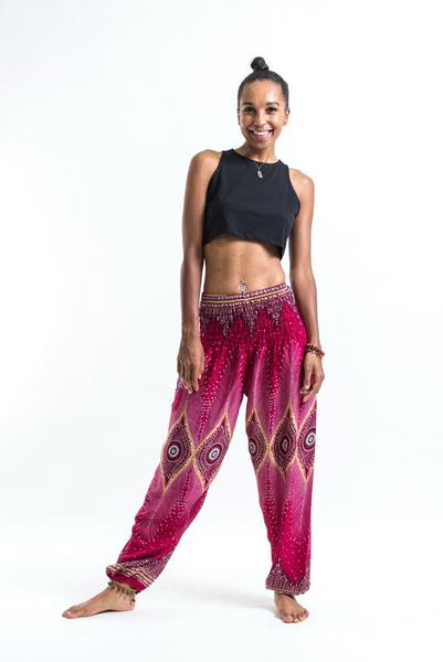 UNISEX DIAMOND PEACOCK HAREM PANTS IN RED